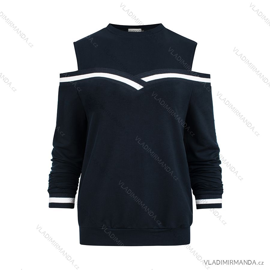 223-1 Bequemes Sweatshirt mit nackten Schultern - Marineblau