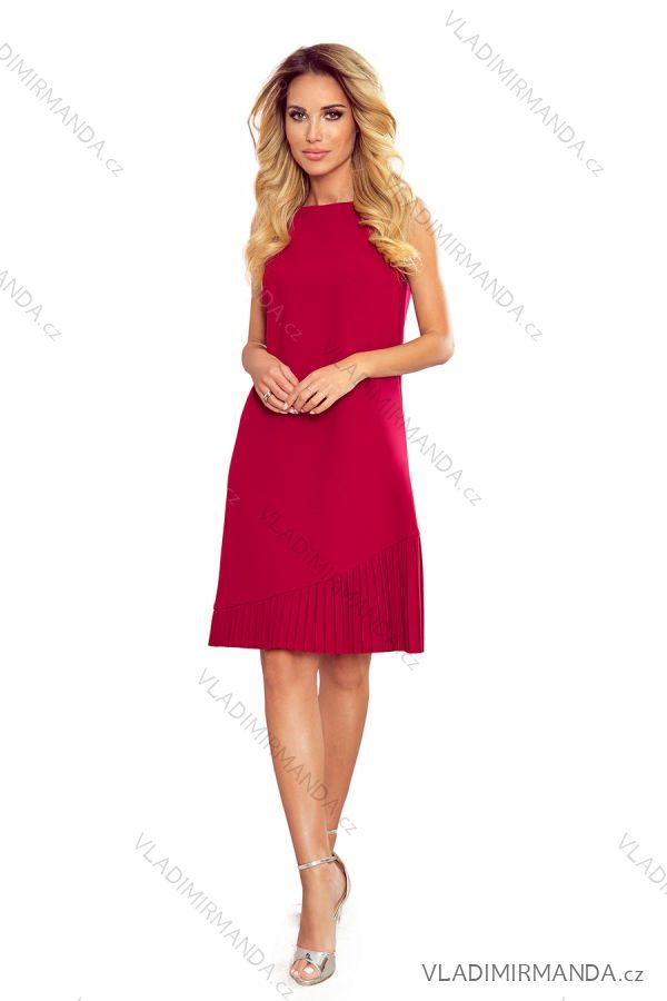 308-2 KARINE - trapezförmiges Kleid mit asymmetrischer Falte - rot