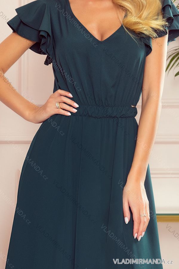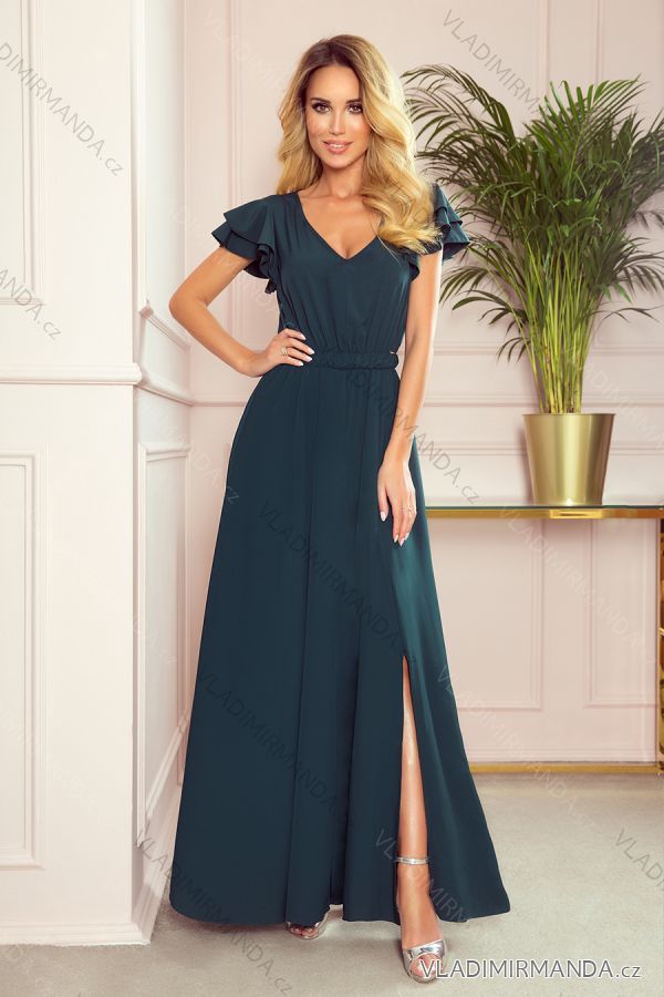 310-1 LIDIA langes Kleid mit Ausschnitt und Rüschen - grün
