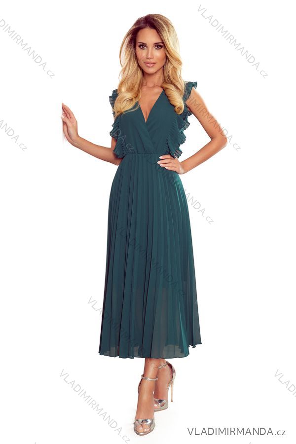 WAREN (125081) > POLISH FASHION EXCLUSIVE NMC (1218) > 315-1 EMILY Faltenkleid mit Rüschen und Ausschnitt - grün