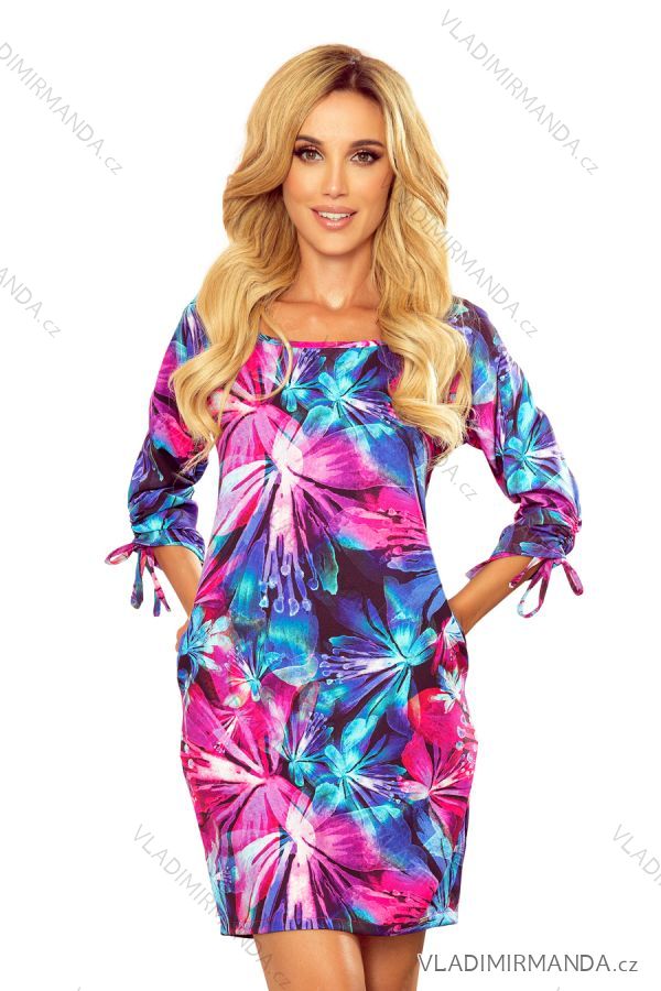 WAREN (119419) > 323-1 Bequemes OVERSIZE-Kleid - blaue und rosa Blumen