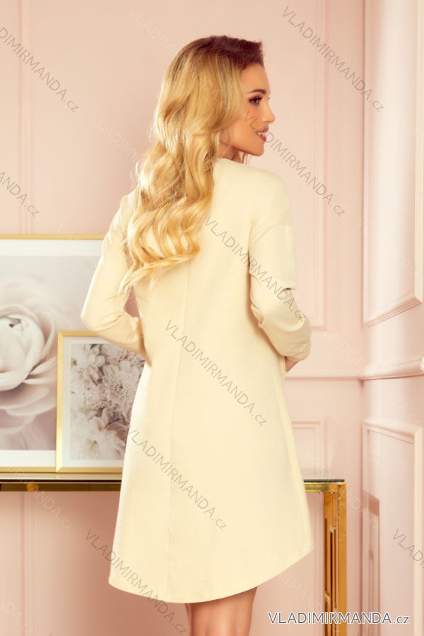 Amelia - warmer langer Känguru-Hoodie - beige. Material aus Baumwolle. Hergestellt in Polen. Numoco Marke.