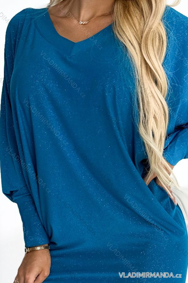 WAREN (120375) > Frauenkleidung (81493) > anziehen (30633) > Kleid elegant (8543) > 402-3 Fledermauskleid mit Ausschnitt – Meeresfarbe mit Glitzer