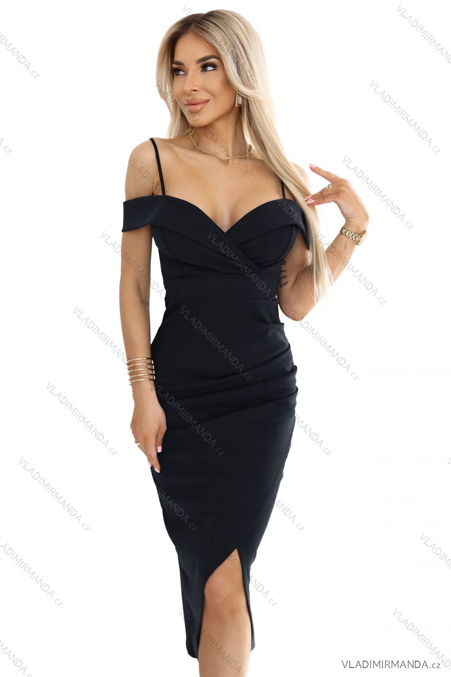 564-11 CALLIE Schulterfreies Midikleid mit Ausschnitt - schwarz