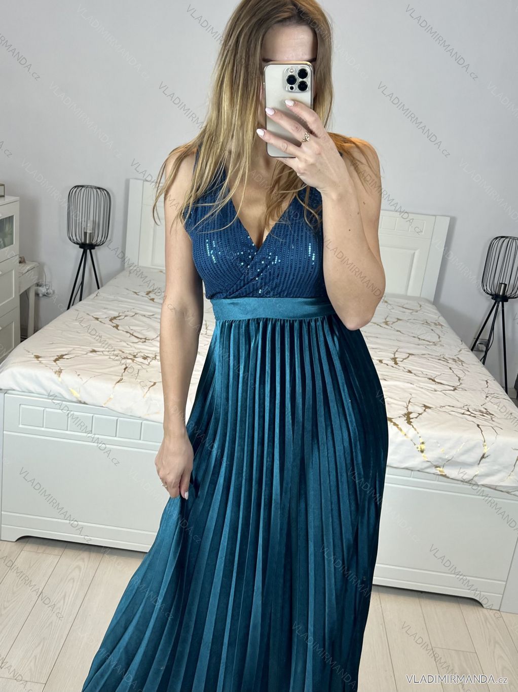 Ärmelloses langes Partykleid aus Paillettensamt für Damen (S/M EINHEITSGRÖSSE) ITALIAN FASHION IMWB233931