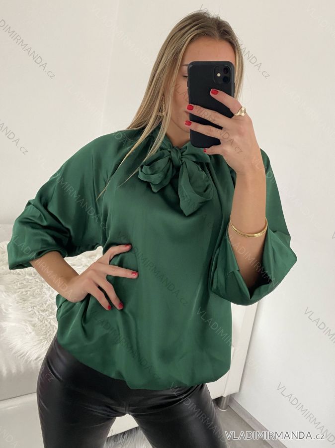 Halenka saténová dlouhý rukáv dámská (S/M/L ONE SIZE) ITALSKá MóDA IM322561 M / L rot