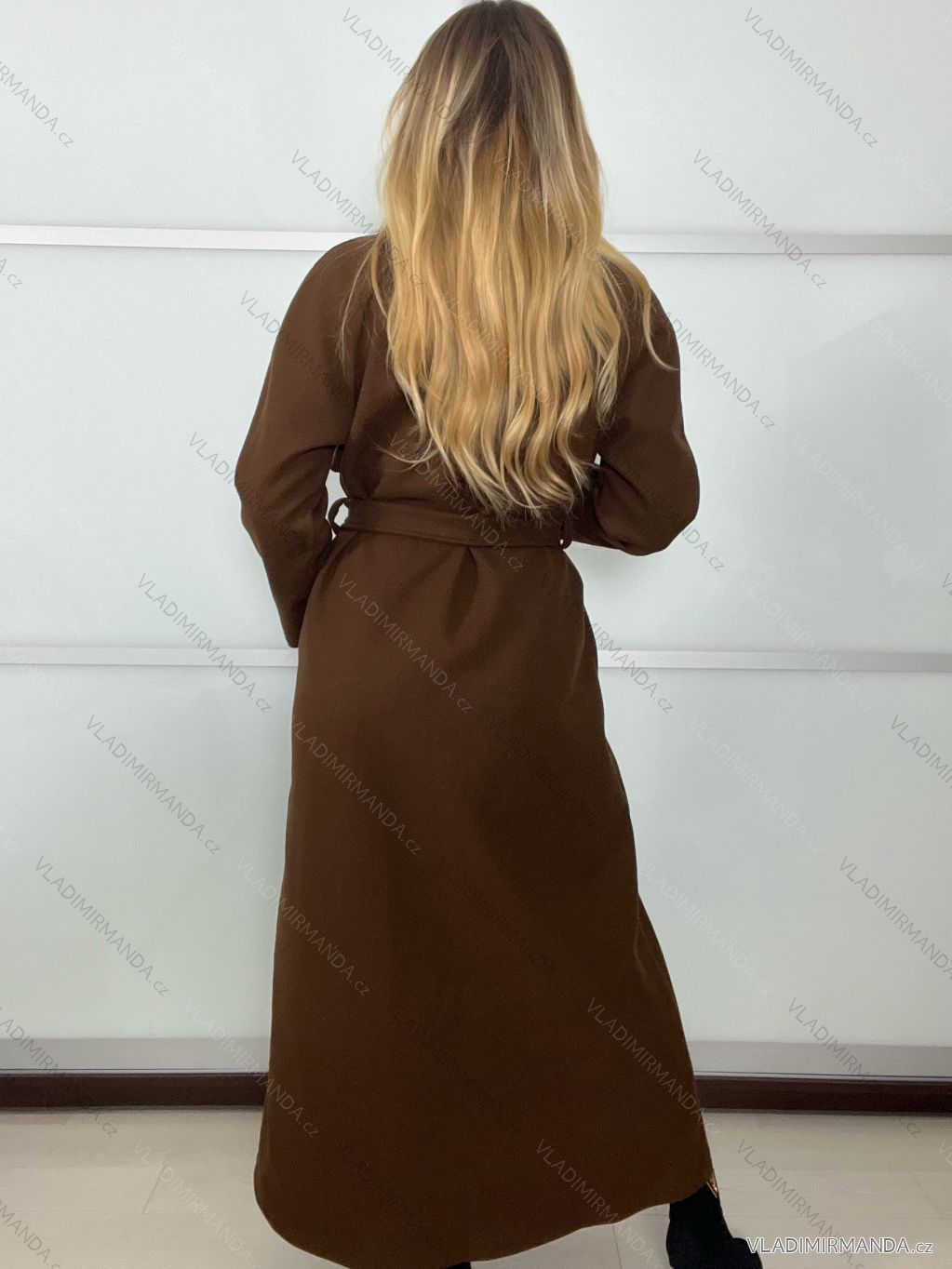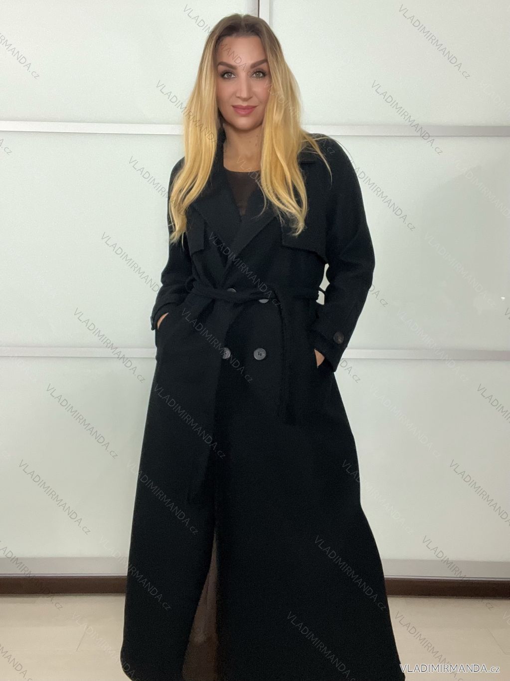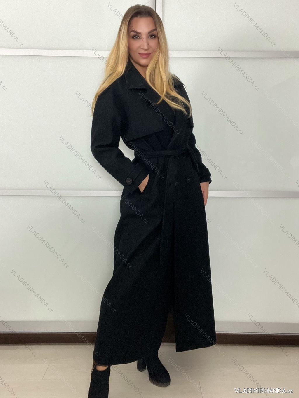 Damenmantel mit Gürtel, langärmelig (Einheitsgröße S/M/L), italienische Mode, IMPVN25251008/DU, schwarz, Größe S/M/L