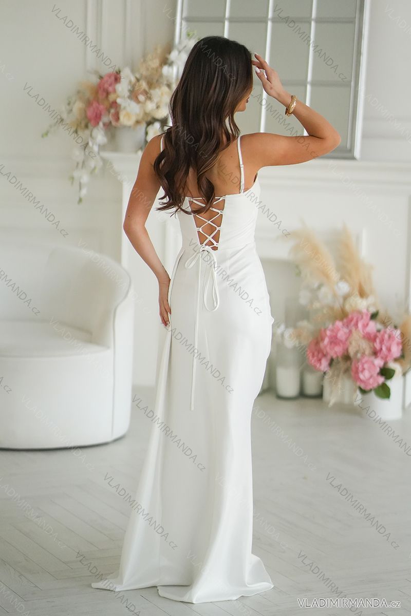 WAREN (120808) > Frauenkleidung (81890) > anziehen (30750) > Langes Maxikleid (8337) > Langes Maxikleid auf Kleiderbügeln (2484) > Šaty elegantní společenské ecru s geometrickým výstřihem a odnímatelnými ramínky dámské (34-46) POLSKÁ MÓDA PMLBC24320-02 weiß 34