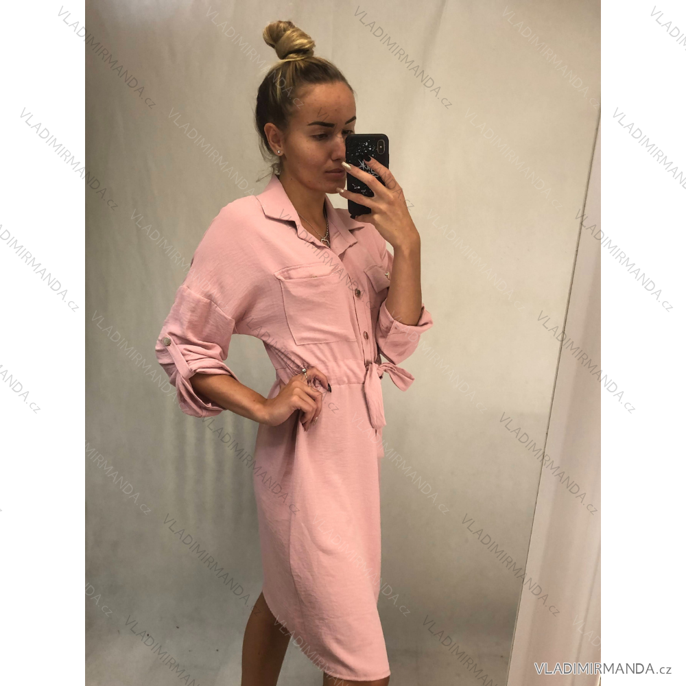 Elegantes langes Hemdkleid Langarm Damen (UNI S / L) ITALIAN FASHION IMWG21063 / DR Sand S / L