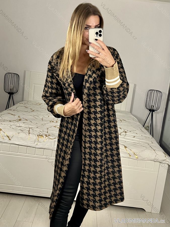Flauschiger Damenmantel mit Knöpfen (S/M/L ONE SIZE) ITALIAN FASHION IMD22962 L/XL Schwarz Braun