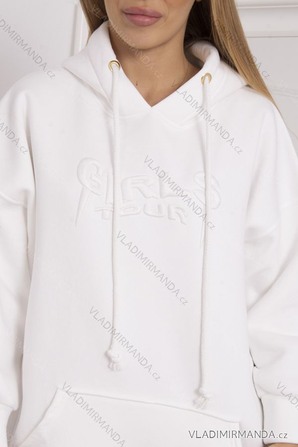 Wir präsentieren Ihnen ein Oversize-Sweatshirt. Sweatshirt hat eine Kapuze und gestickte Aufschrift Girls Tour. Auf der Vorderseite befindet sich eine aufgenähte Tasche. Das Sweatshirt besteht aus isolierendem Material. Die Größe ist universell und passt für Damen in den Größen M, L, XL.