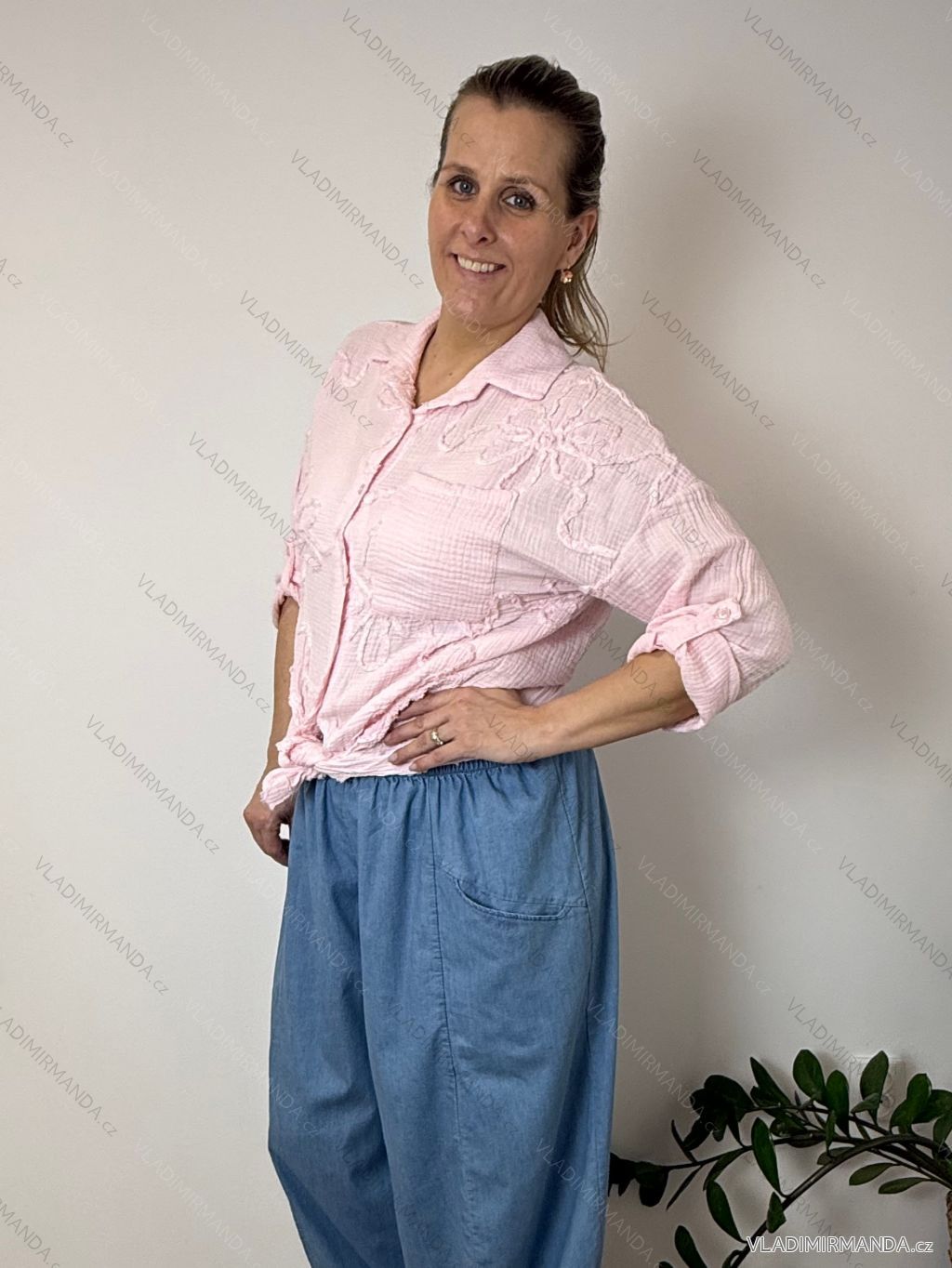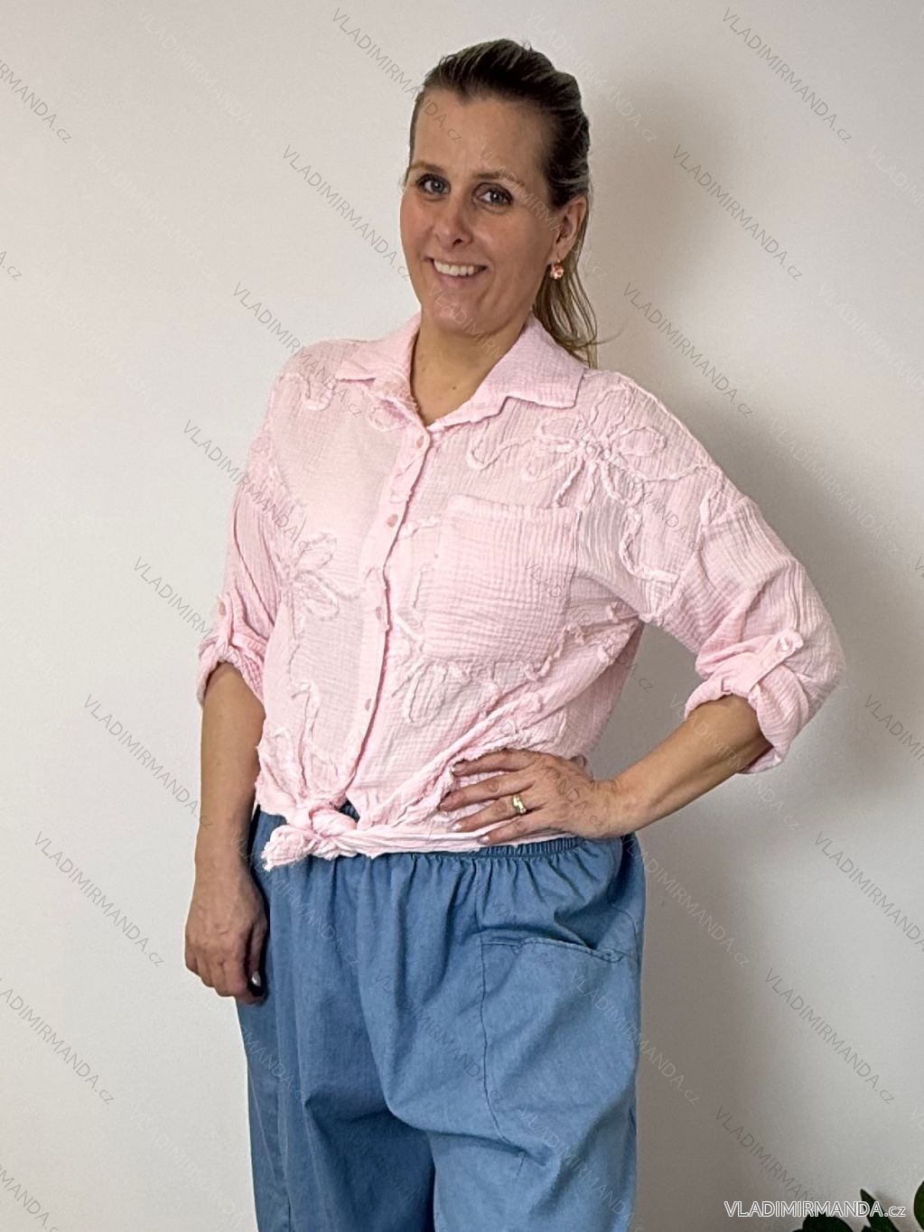 WAREN (120808) > Frauenkleidung (81890) > Hemden und Blusen (3808) > Klassische Shirts (1501) > Klassisches 3/4 Langarmshirt für Damen, Übergröße (50/52/54 ONE SIZE) ITALIAN FASHION IMWDL252349 S / M / L růžová světlá