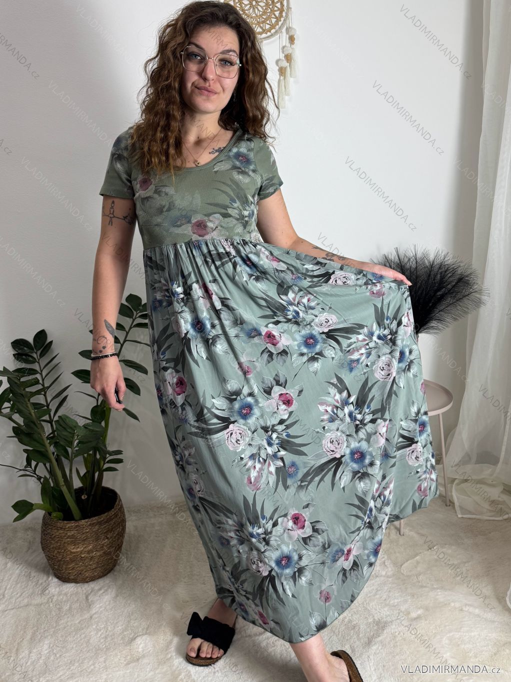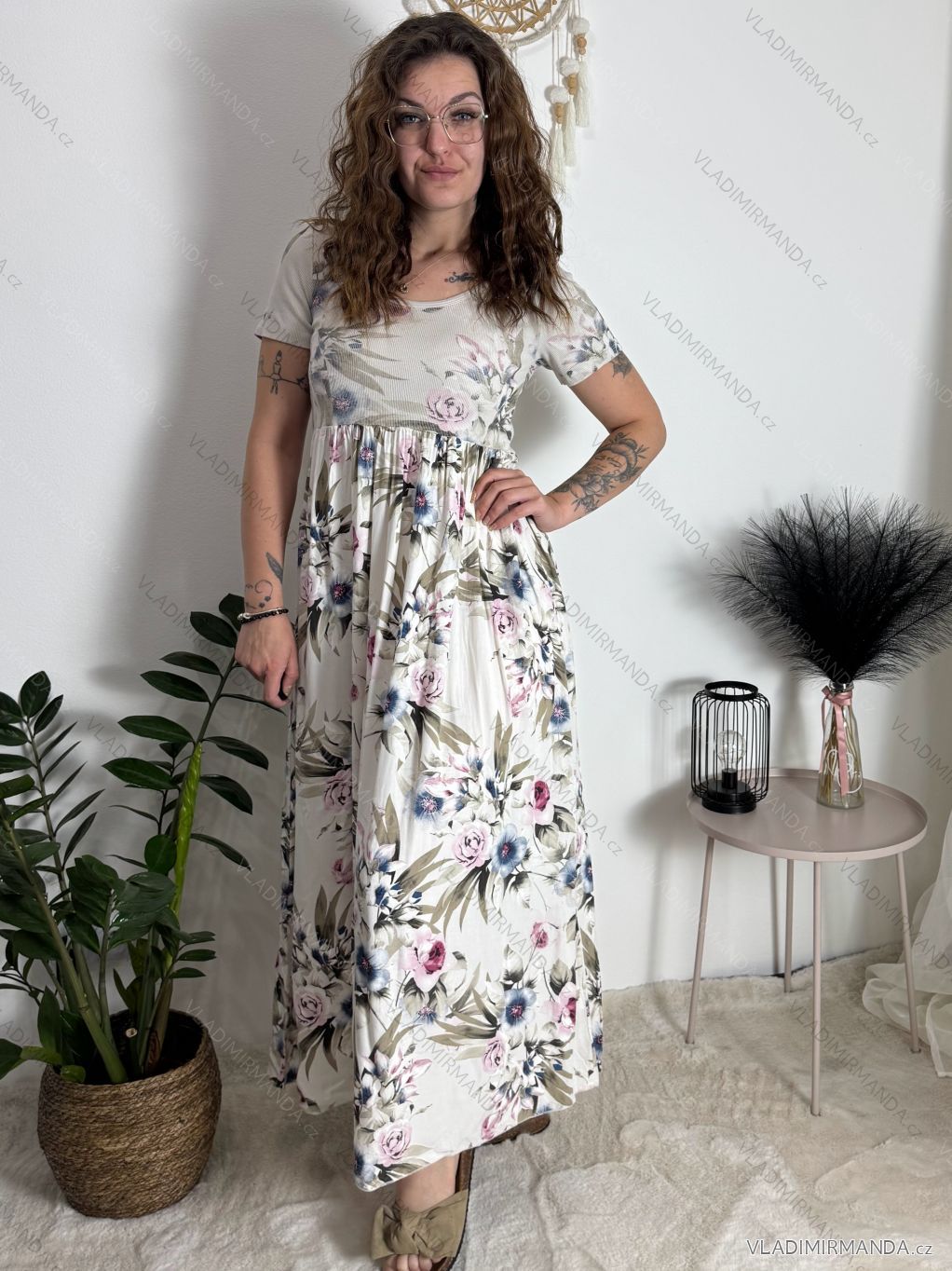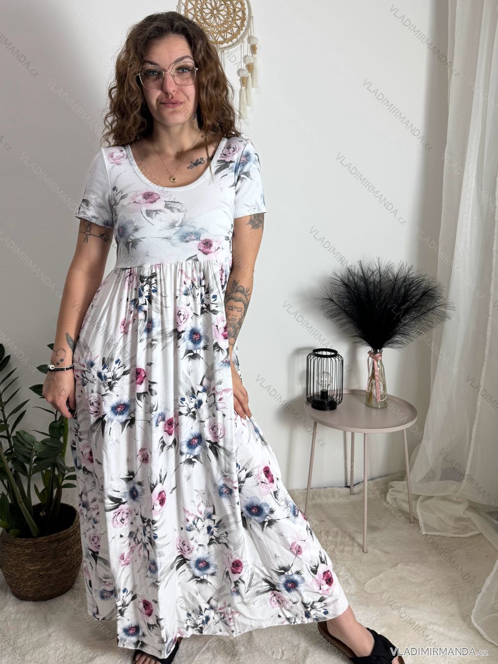 Kurzarm-Sommerkleid für Damen FIORE (S/M/L EINHEITSGRÖSSE) ITALIAN FASHION IMSM25019