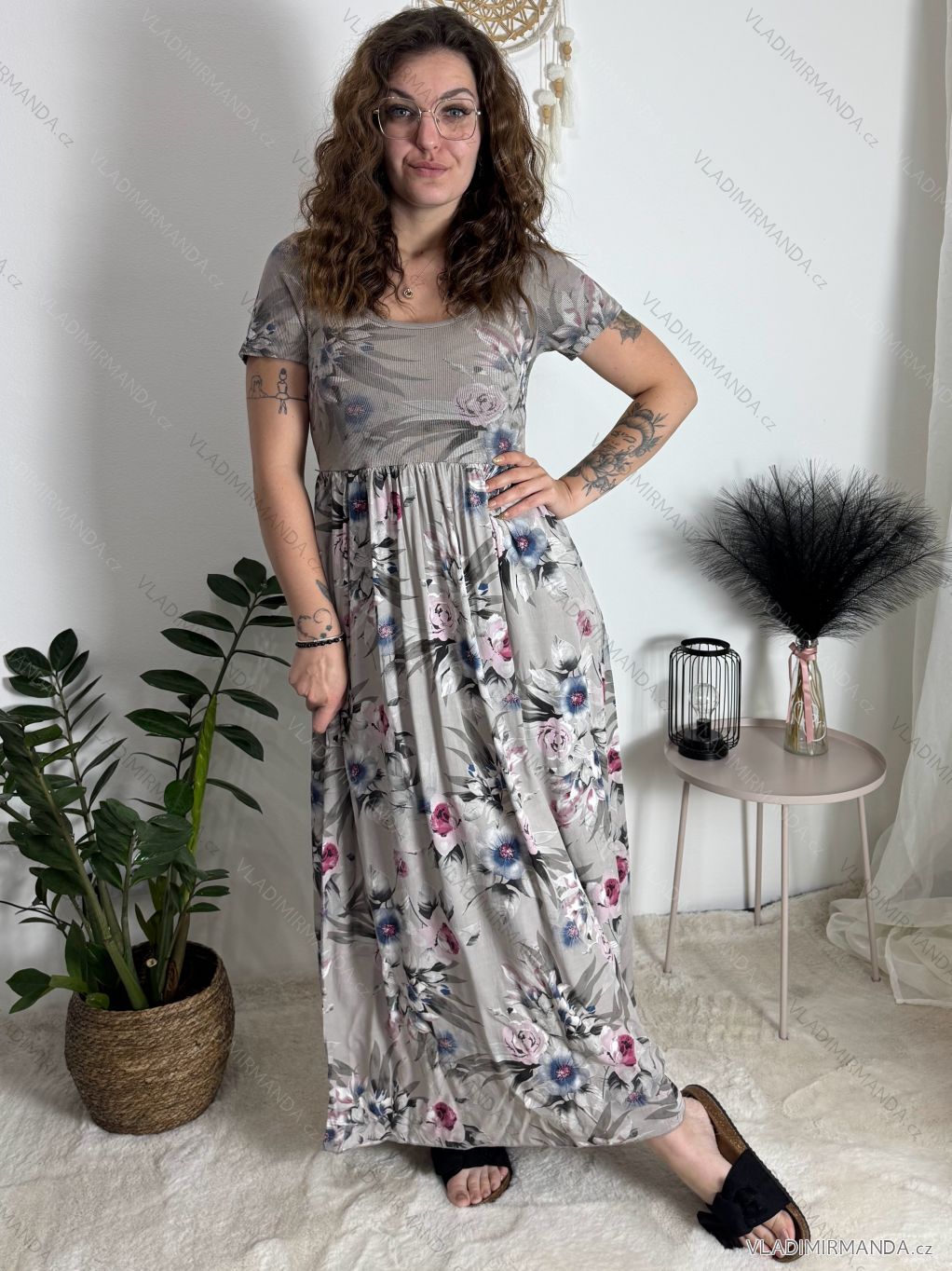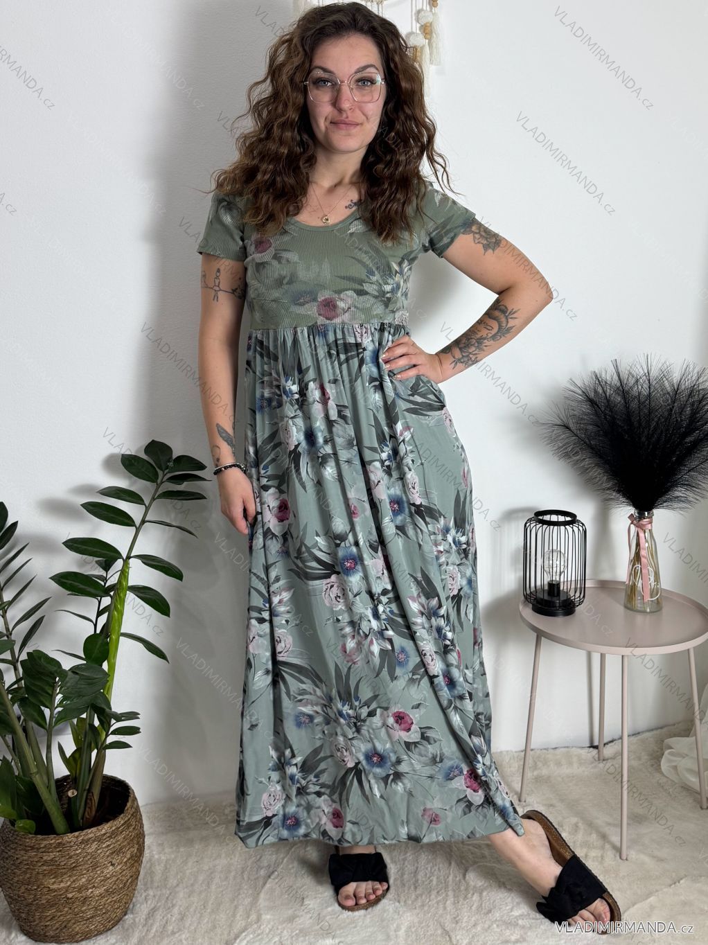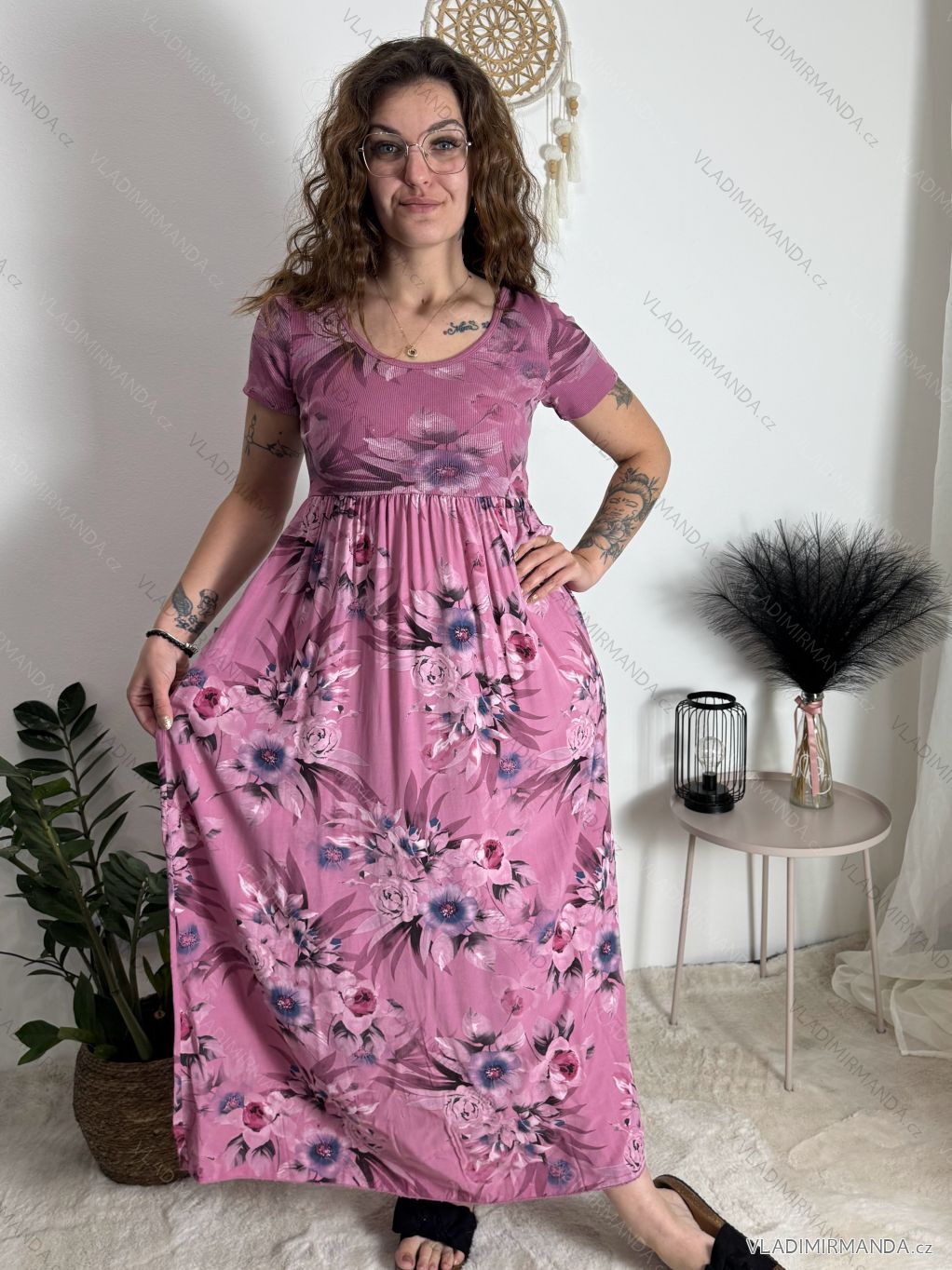 Kurzarm-Sommerkleid für Damen FIORE (S/M/L EINHEITSGRÖSSE) ITALIAN FASHION IMSM25019