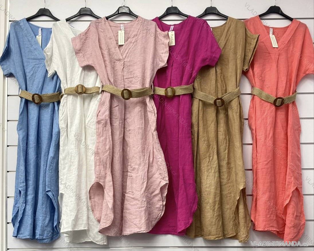 Kurzärmliges Maxikleid aus Leinen für Damen (M/L/XL ONE SIZE) ITALIAN FASHION IMWA222857