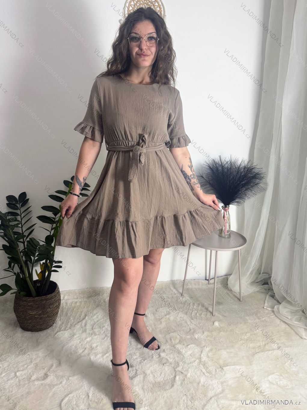 Kurzärmliges Sommer-Freizeitkleid für Damen (S/M/L EINHEITSGRÖSSE) ITALIAN FASHION IMWGB25022