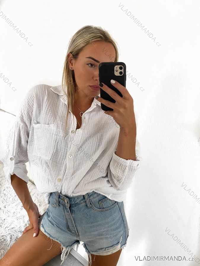 WAREN (125060) > Frauenkleidung (81731) > Hemden und Blusen (3807) > Langarm-Musselinhemd für Damen in Übergröße (L/XL/2XL Einheitsgröße) ITALIAN FASHION IMWP232488