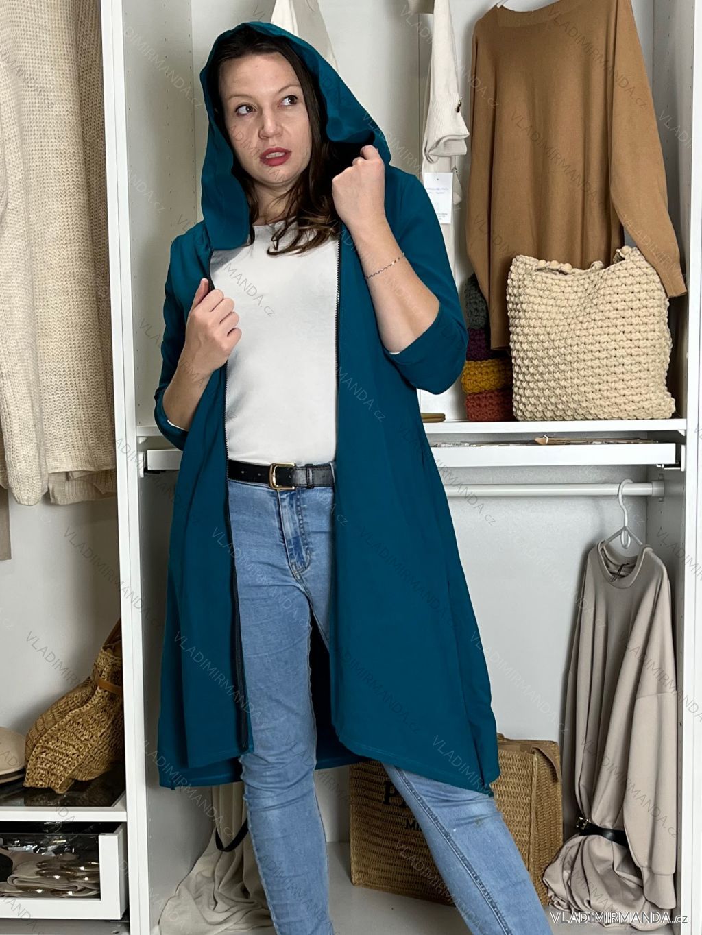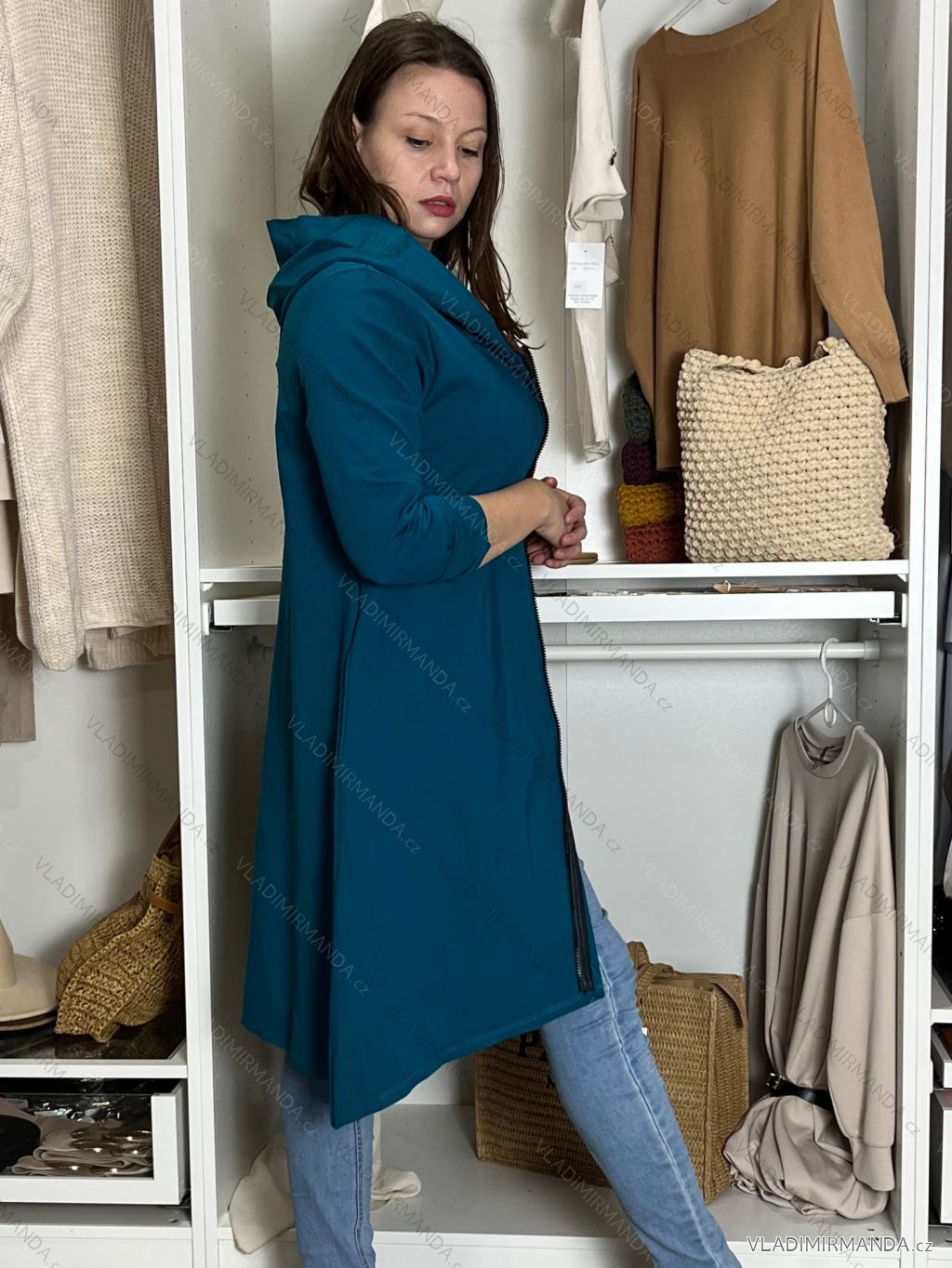 Langärmliger, übergroßer Kapuzen-Sweatshirtmantel mit Reißverschluss für Damen (S/M EINHEITSGRÖSSE) ITALIAN FASHION IMPLI2385141 S / M / L modrá petrolejová