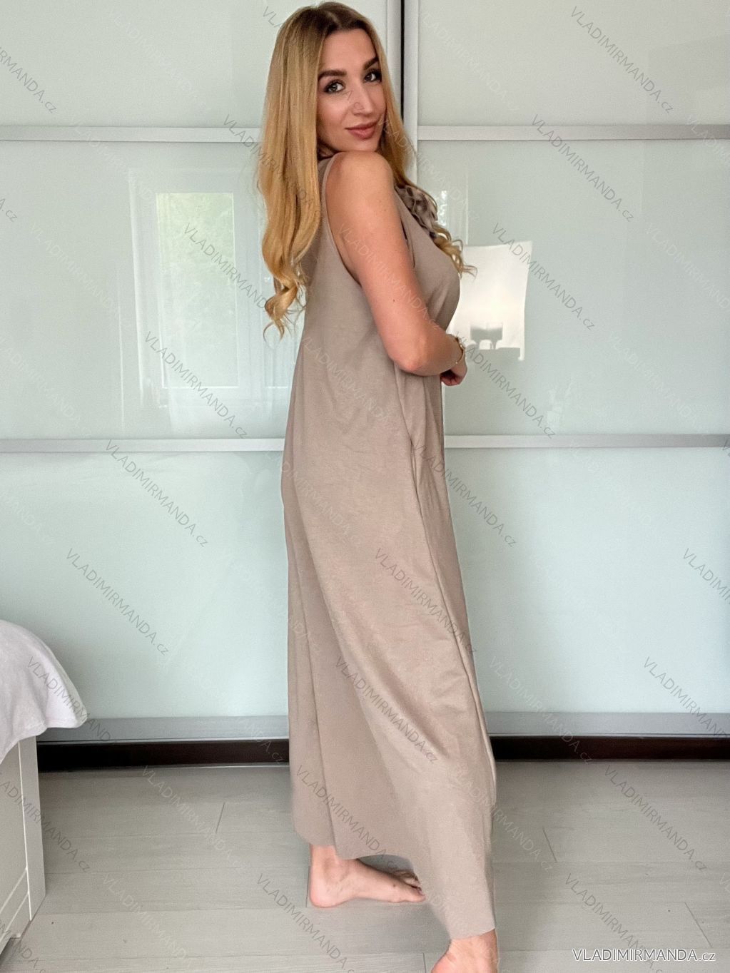 Langes Chiffon-Kurzarmkleid für Damen (S/M ONE SIZE) ITALIAN FASHION IMWGS231048 - beige - S / M / L