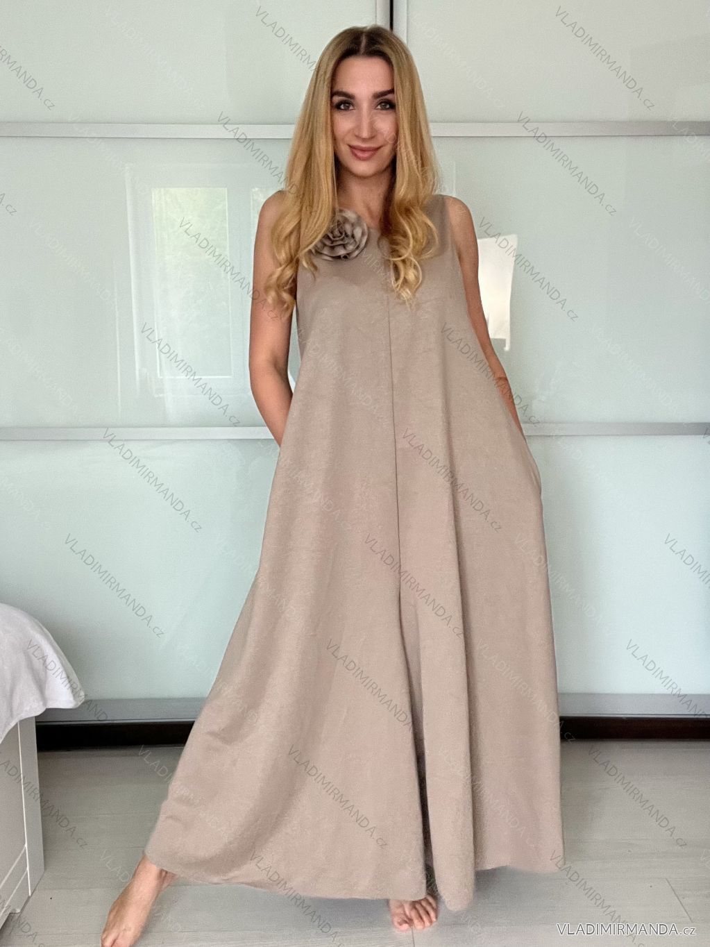 WAREN (120768) > Frauenkleidung (82128) > Overall (1218) > Eleganter Overall (84) > Langes Chiffon-Kurzarmkleid für Damen (S/M ONE SIZE) ITALIAN FASHION IMWGS231048 - beige - S / M / L