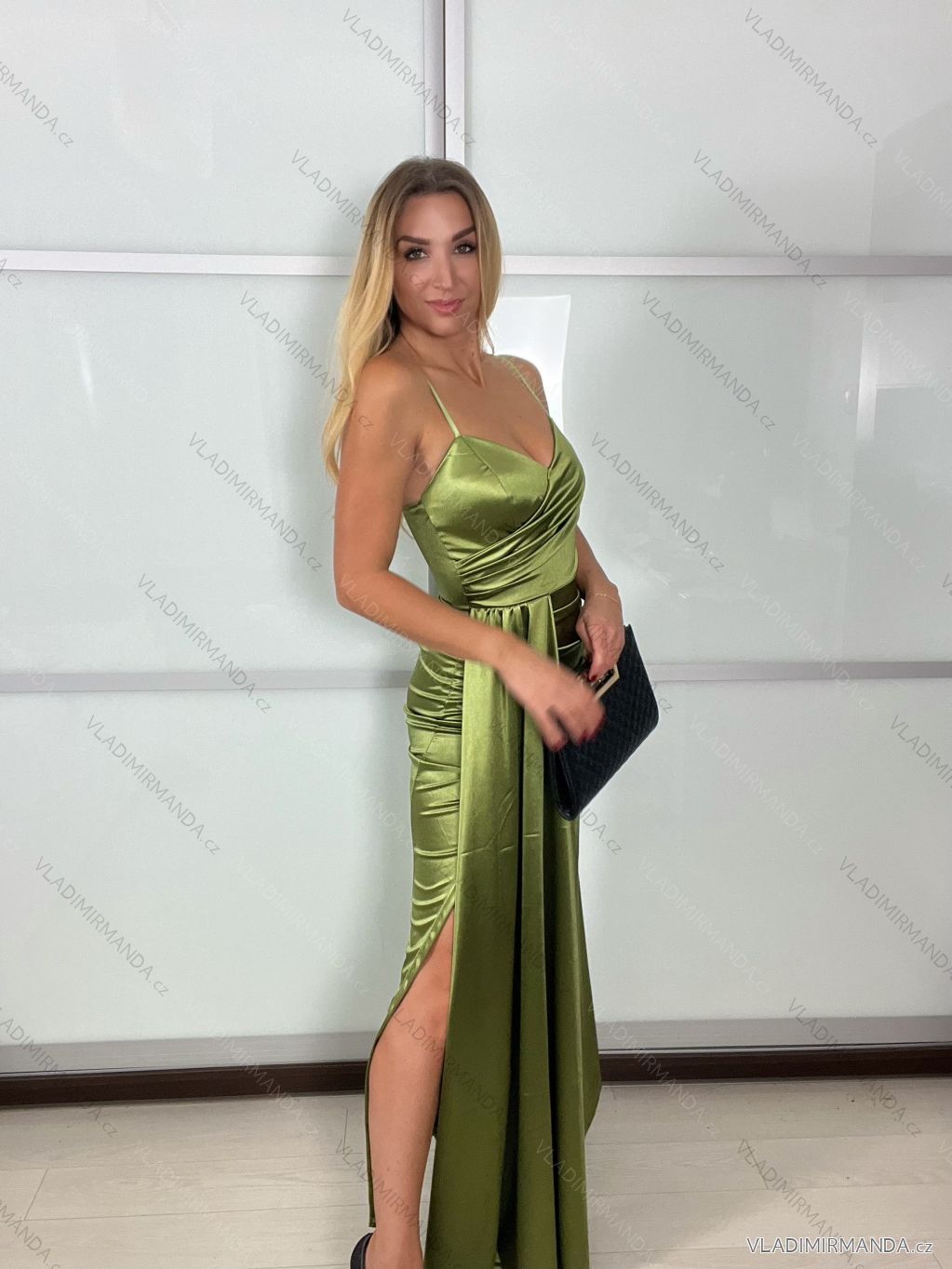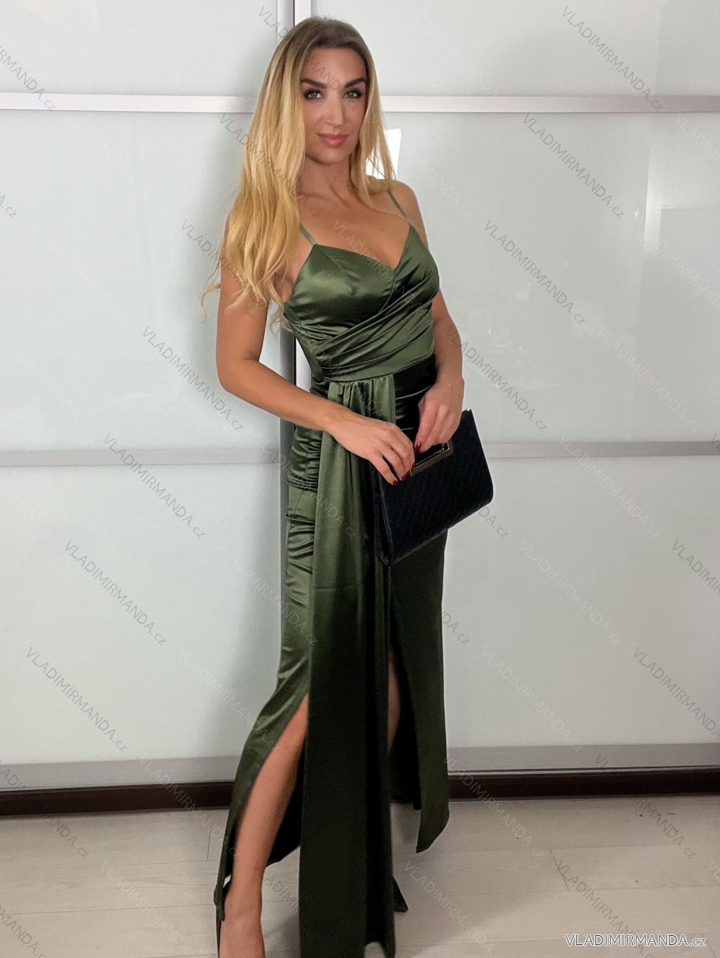 WAREN (119419) > Frauenkleidung (80848) > anziehen (30318) > Langes, elegantes Partykleid für Damen mit Trägern (S/M EINHEITSGRÖSSE) ITALIAN FASHION IMPBB23B23376/DU - olivgrün - S / M