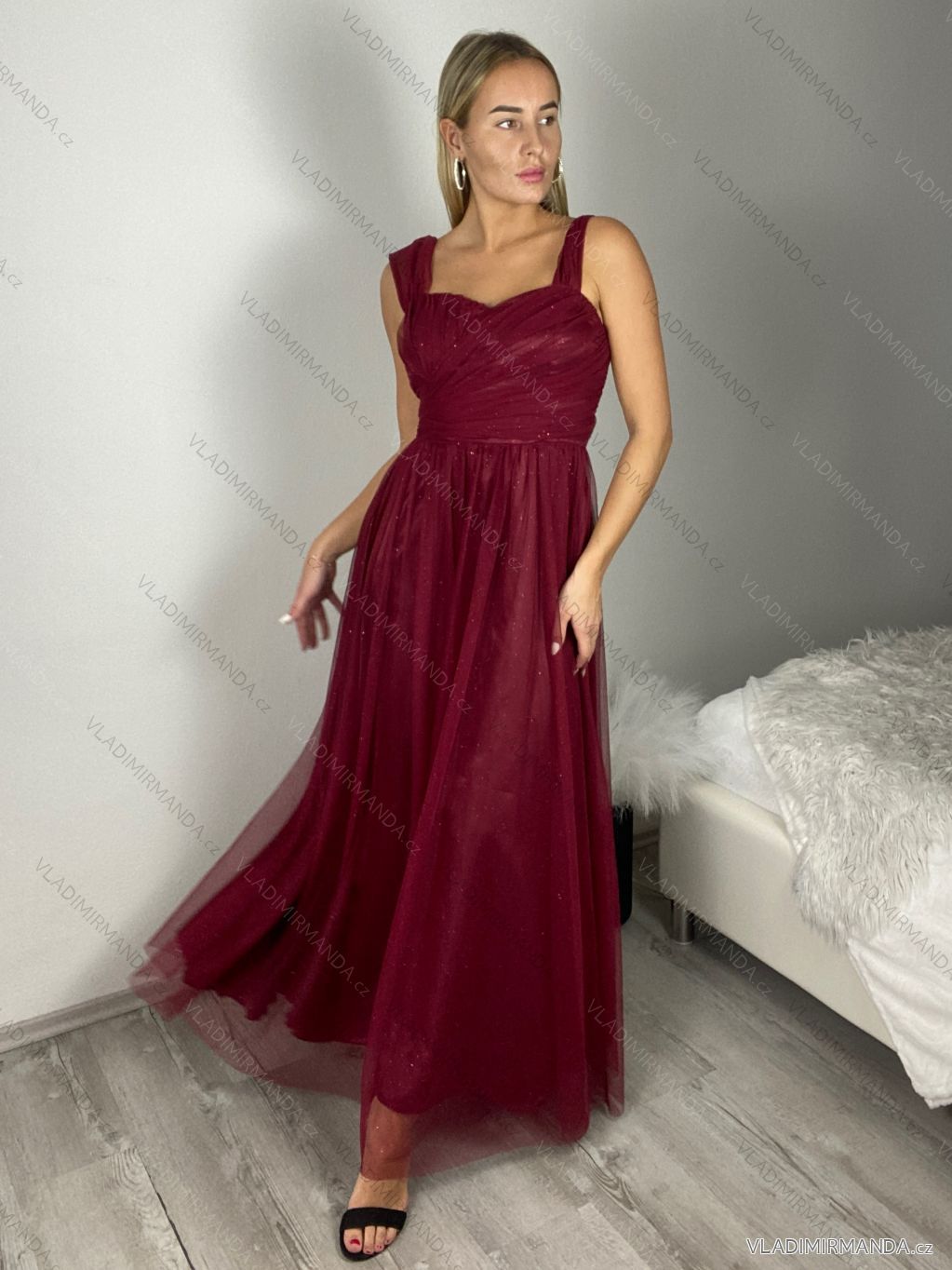 Langes, glitzerndes Tüll-Partykleid Carmen mit Trägern für Damen (Einheitsgröße S/M/L) ITALIENISCHE MODE IMC24429