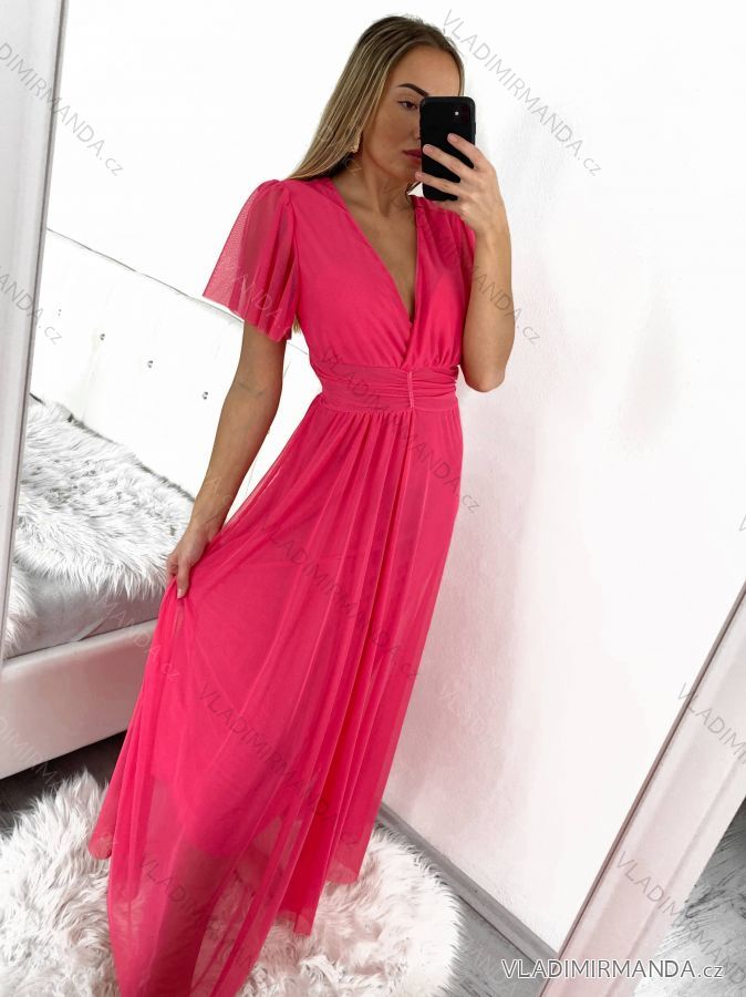 Langes Party-Kurzarmkleid für Damen (S/M EINHEITSGRÖSSE) ITALIAN FASHION IMM23M24081