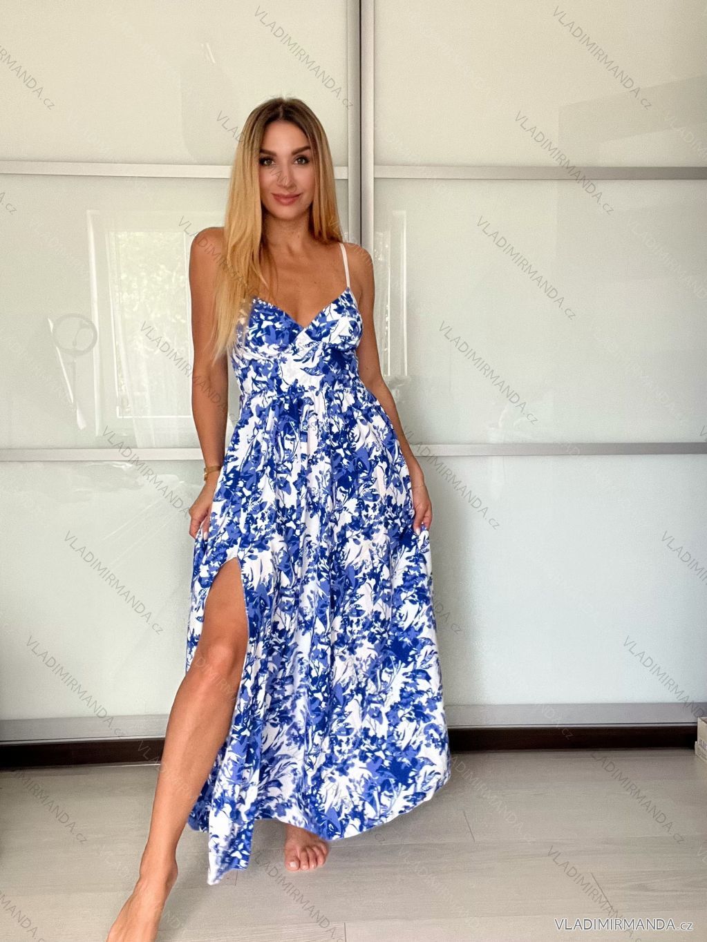 Langes Sommerkleid mit Trägern für Damen (S/M ONE SIZE) ITALIAN FASHION IMPBB23B23745 - blau - S / M