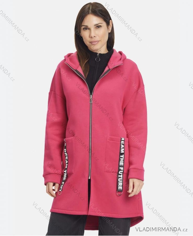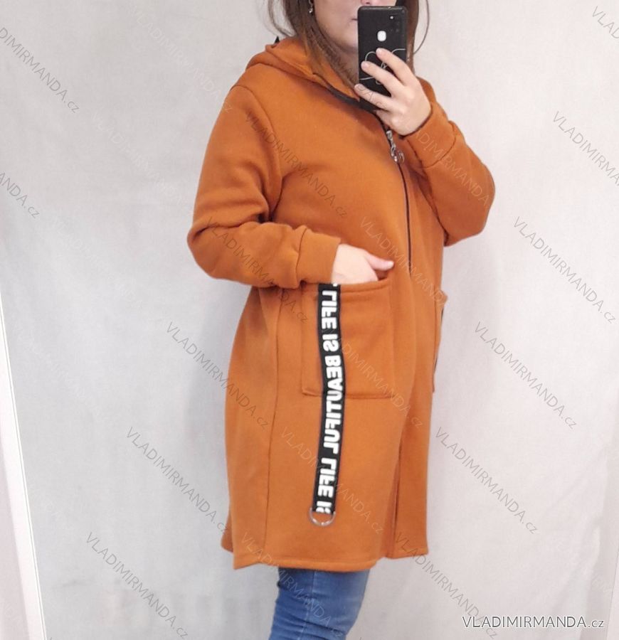 Mikina teplá prodloužená dlouhý rukáv na zip s kapucí dámský (XL/2XLONE SIZE) ITALSKÁ MÓDA IMD22740