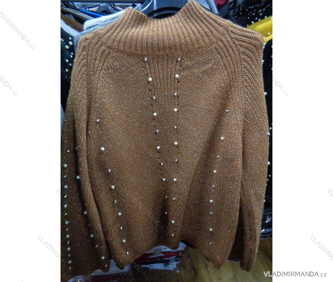 Pullover mit Perlen warme lange Ärmel Damen (uni sl) PAPILLONN ITALIAN Fashion IMT17PL4098