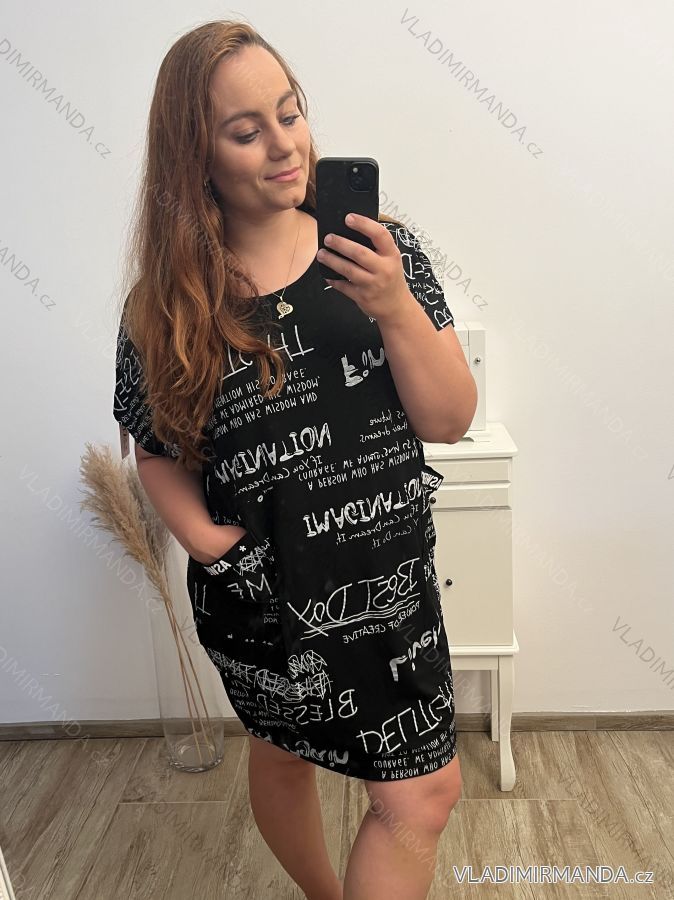 Šaty oversize krátký rukáv dámské nadrozměr (4XL/5XL ONE SIZE) ITALSKÁ MÓDA IM422026