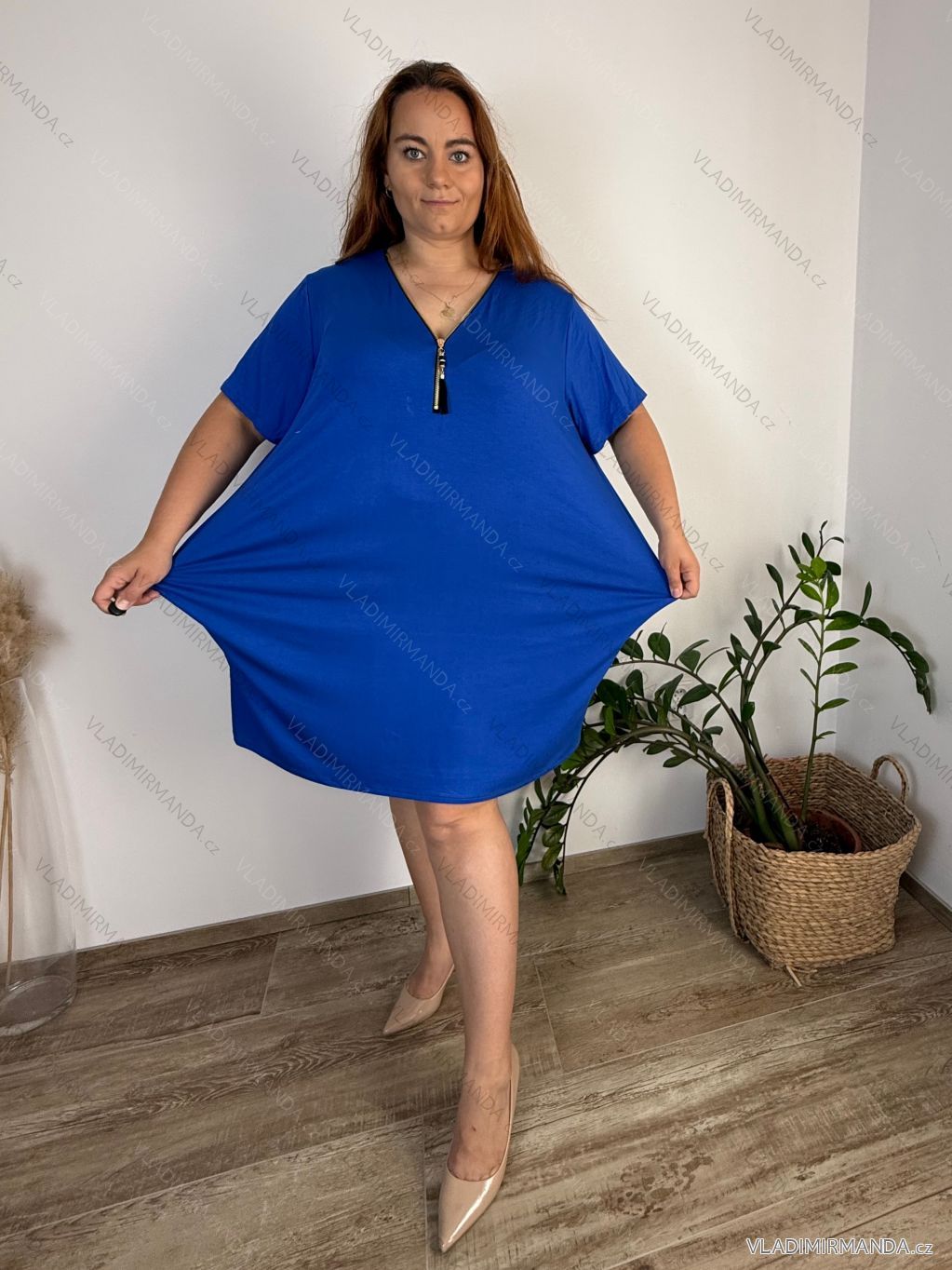 Šaty oversize krátký rukáv dámské nadrozměr (4XL/5XL ONE SIZE) ITALSKÁ MÓDA IM422026