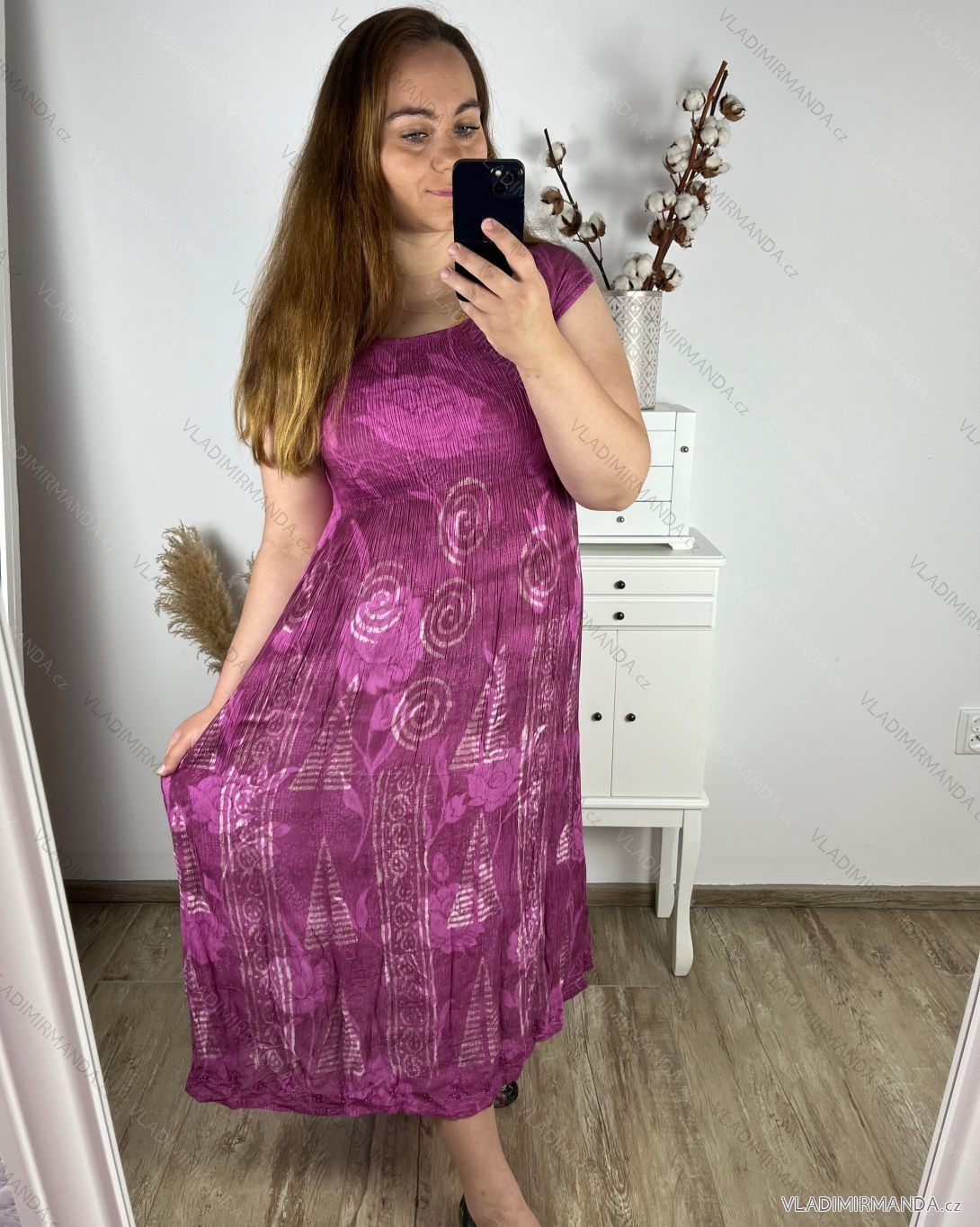WAREN (120375) > Frauenkleidung (81493) > anziehen (30633) > Šaty s páskem krátký rukáv dámské nadrozměr (XL/2XL ONE SIZE) ITALSKÁ MÓDA IMBM23019