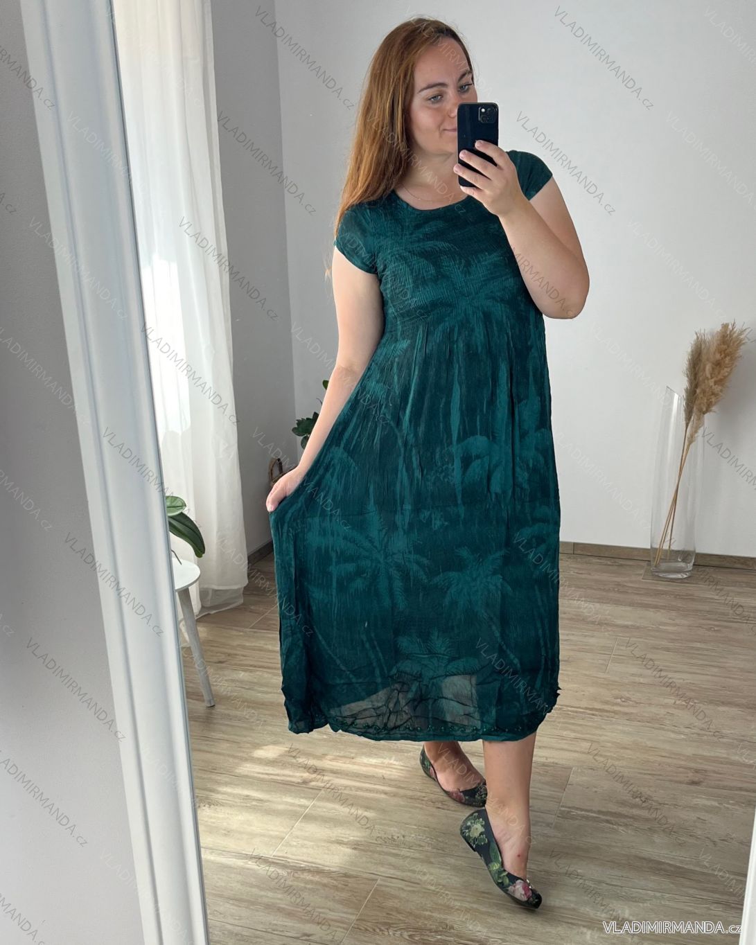 WAREN (120593) > Frauenkleidung (81717) > anziehen (30748) > Šaty s páskem krátký rukáv dámské nadrozměr (XL/2XL ONE SIZE) ITALSKÁ MÓDA IMBM23019 52/54 dunkles Petroleum