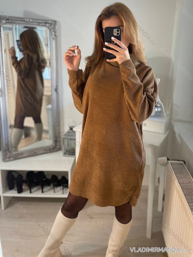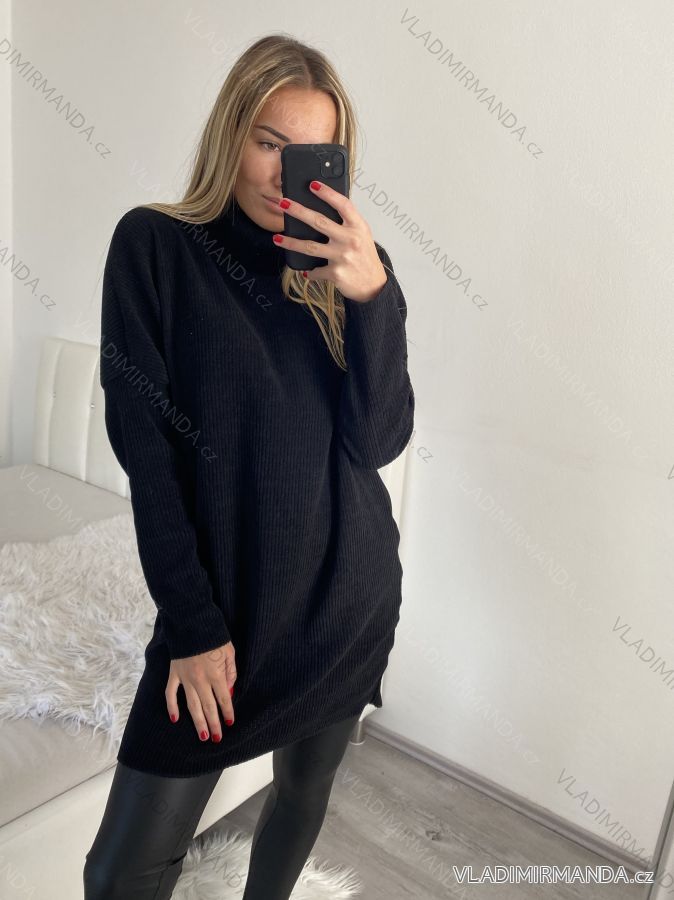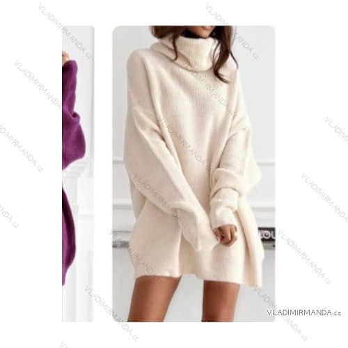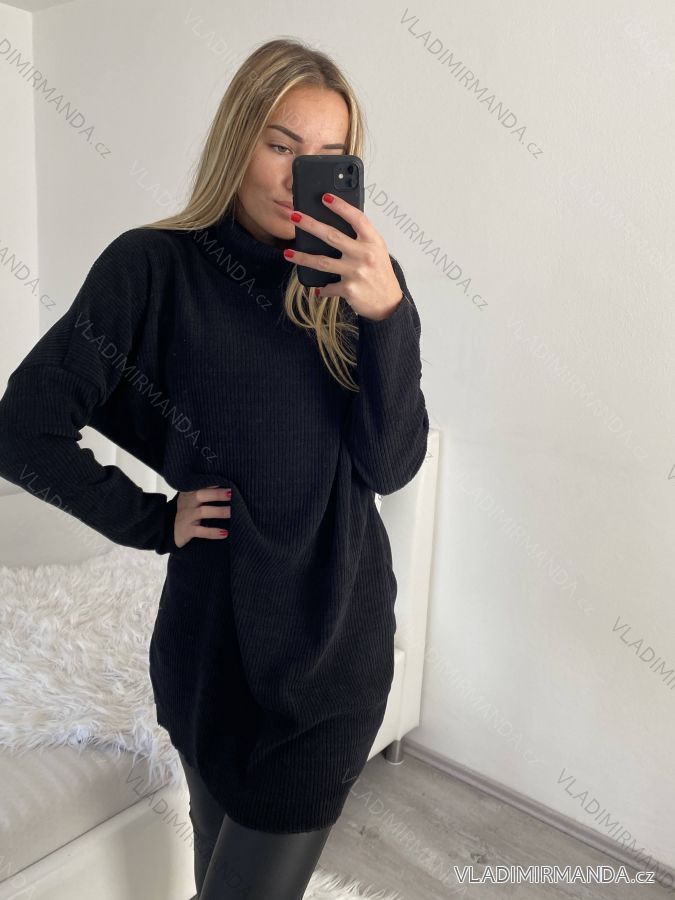 Šaty teplé/svetr s rolákem oversize dlouhý rukáv dámské (S/M ONE SIZE) ITALSKÁ MÓDA IMWB22325