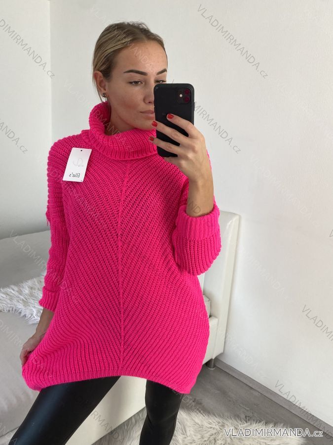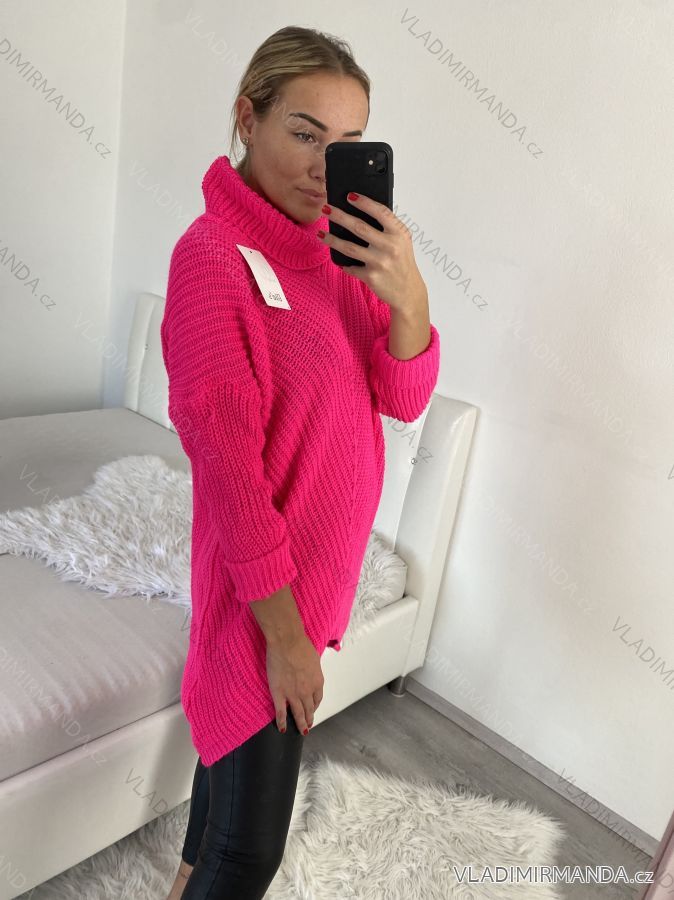 Svetr pletený prodloužený s rolákem dlouhý rukáv dámský (L/XL/2XL ONE SIZE) ITALSKÁ MÓDA IM4221281