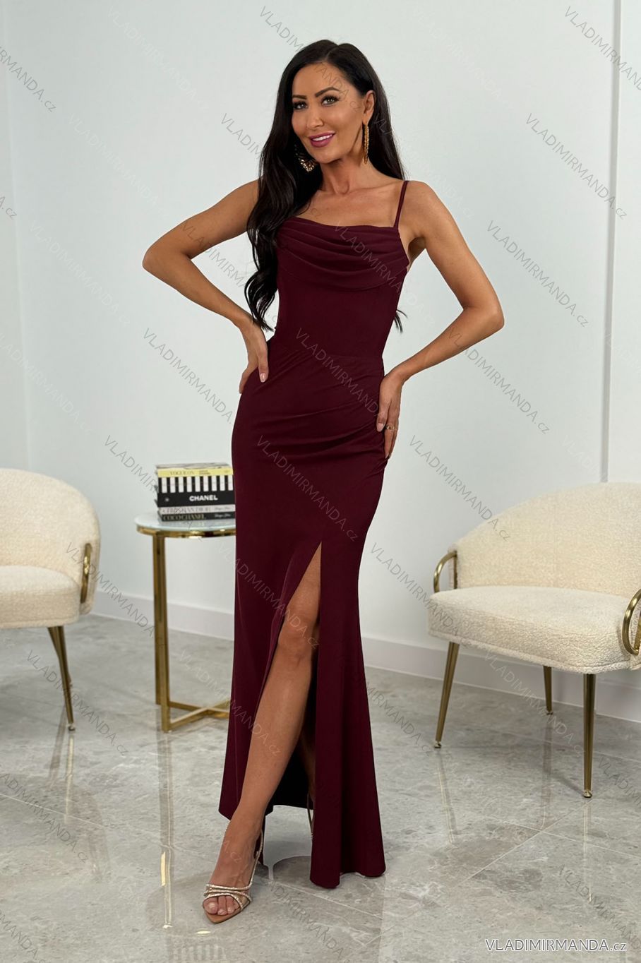 Trägerloses langes Partykleid aus Satin für Damen (34-42) POLISH FASHION PMLEL24NATHALIE Wein