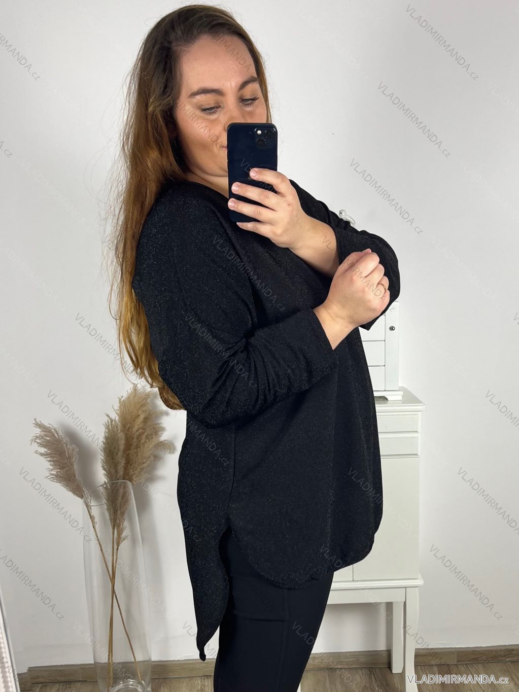 Tunika dlouhý rukáv dámská nadrozměr (3XL/4XL ONE SIZE) ITALSKÁ MÓDA IMWQ23126 weiß 3xl / 4xl