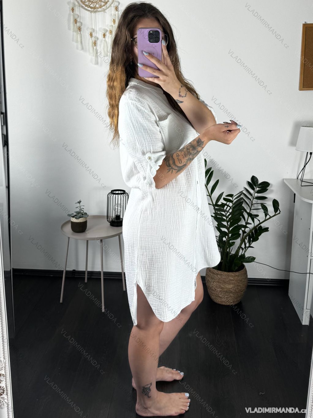 Mušelínová prodloužená tunika 3/4 rukáv