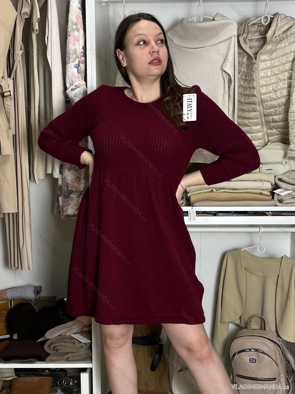 Warmes Langarm-Strickkleid für Damen (Einheitsgröße S/M) ITALIAN FASHION IMD221070