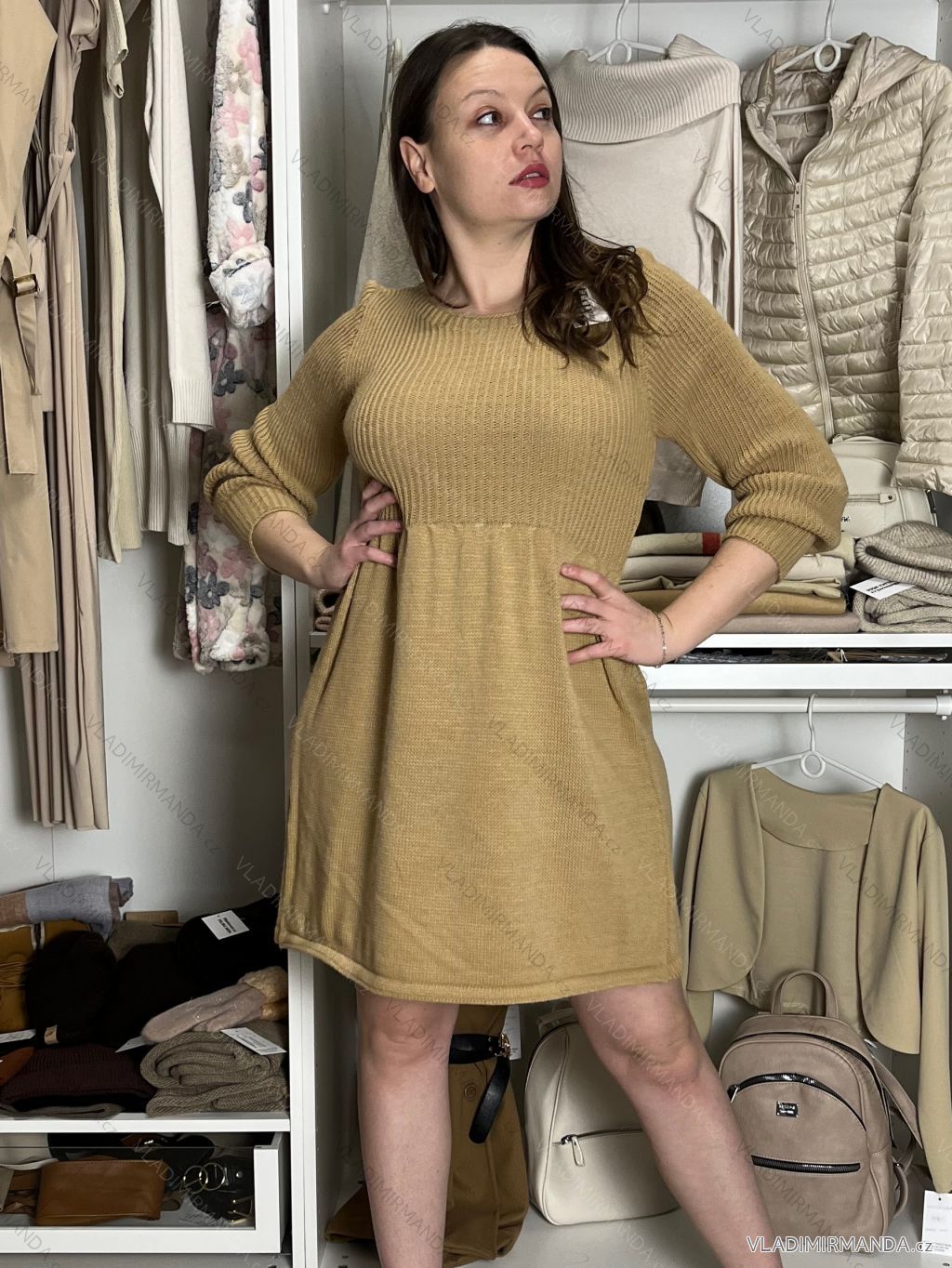 WAREN (120465) > Frauenkleidung (81583) > anziehen (30655) > Warmes Langarm-Strickkleid für Damen (Einheitsgröße S/M) ITALIAN FASHION IMD221070